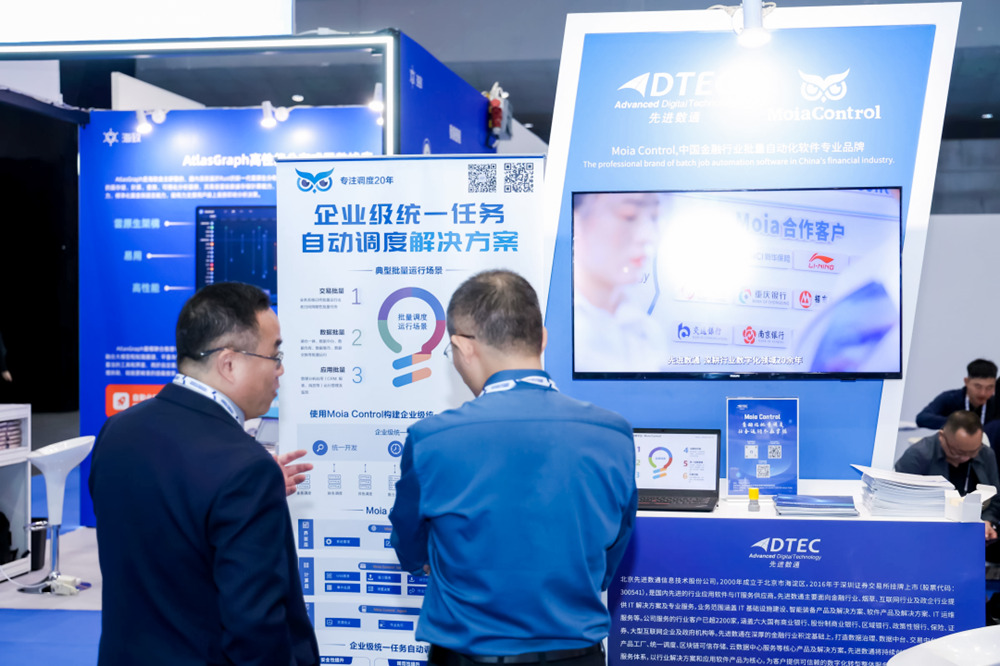 本次会议由中关村金融科技产业开展联盟、中关村互联网金融研究院携手16家内地金融科技企业在香港金融科技周参展。 不朽情缘 作为受邀的参展商之一,深度参与此次盛会,并于亚洲国际博览馆1号馆--CA10展区展示了公司自主研发的企业统一任务调度平台 Moia Control。